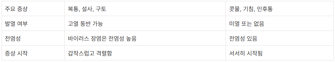 장염은 일반 감기와 증상이 비슷할 수 있어 구분이 필요합니다.
